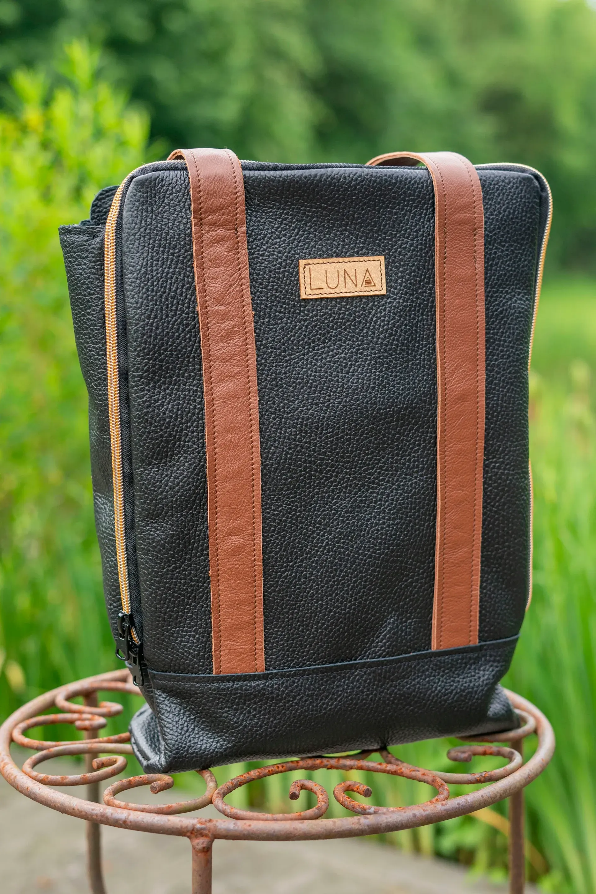 Het materiaal: De tas is gemaakt van zwart rundleer, de hengels zijn gemaakt van bruin rundleer.