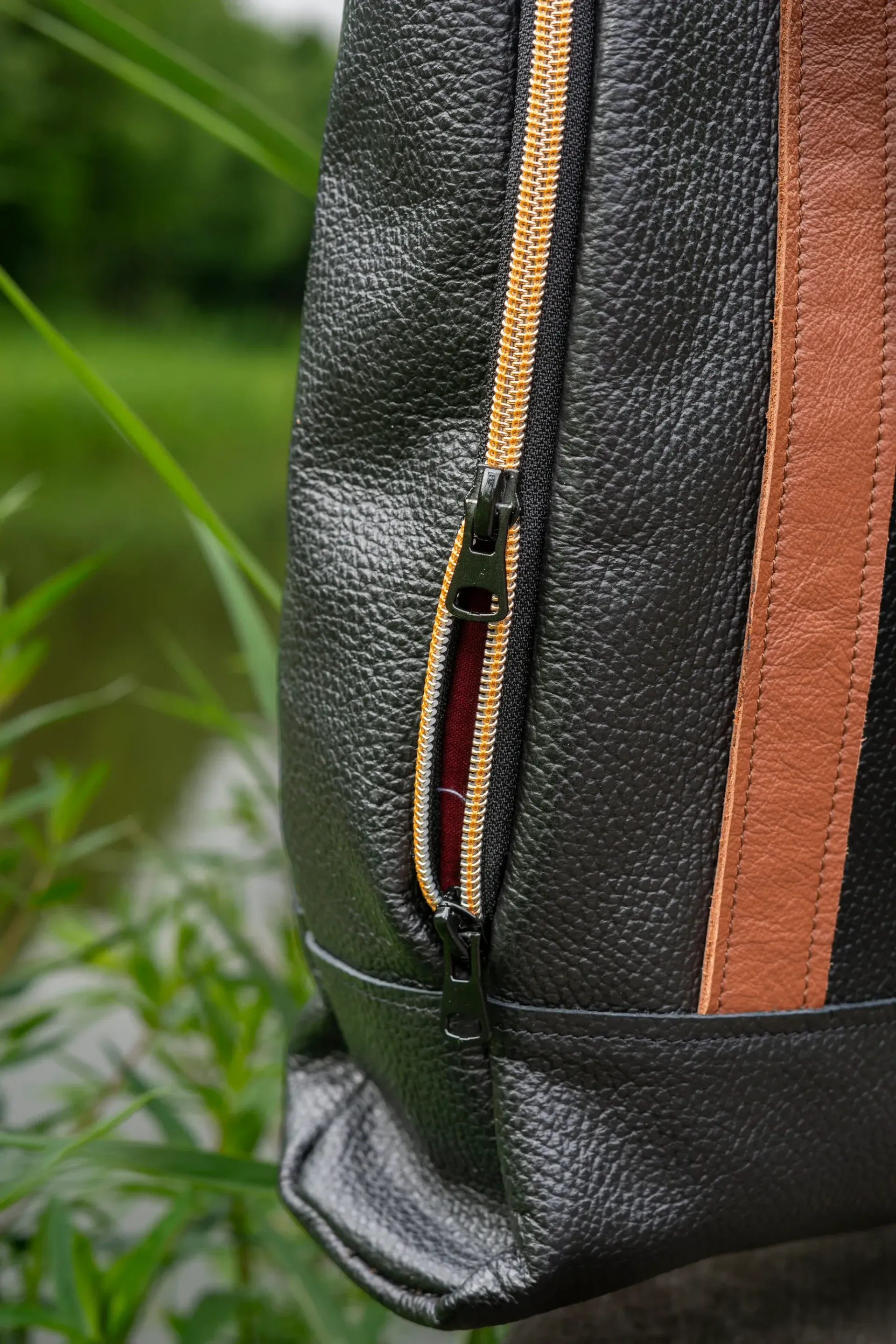 De rits is afgewerkt met goud.